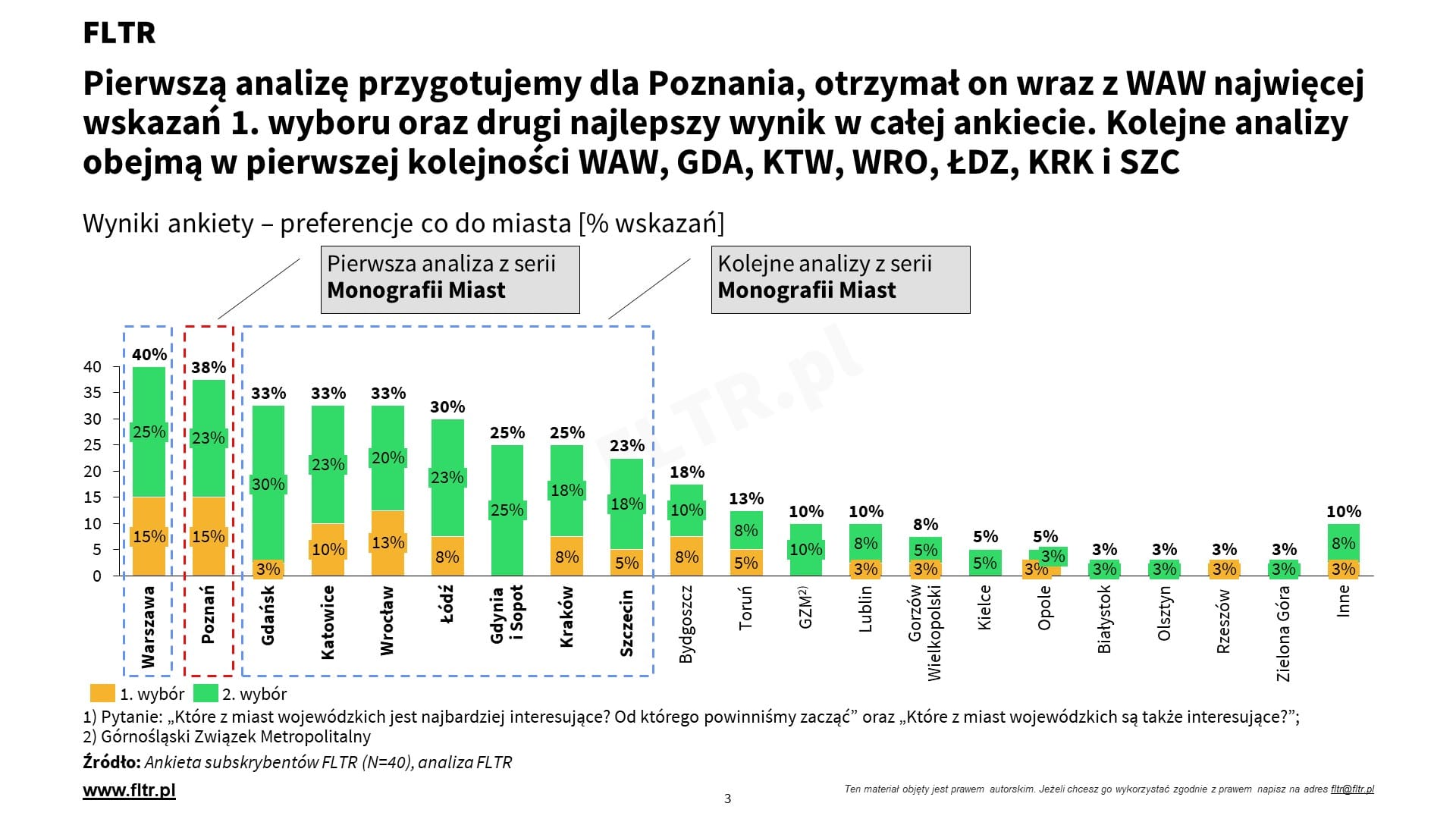 Dziękujemy serdecznie za wypełnienie ankiety poświęconej monografiom miast. Otrzymaliśmy aż 40 odpowiedzi i sugestii kierujących naszą analizą. Poniżej dzielimy się jej wynikami i decyzjami co do planu wydawniczego analiz miast - pierwsza publikacja z tej serii nastąpi już 23. lutego i będzie dotyczyć Poznania! O tym z czego wynikają te decyzje piszemy poniżej.