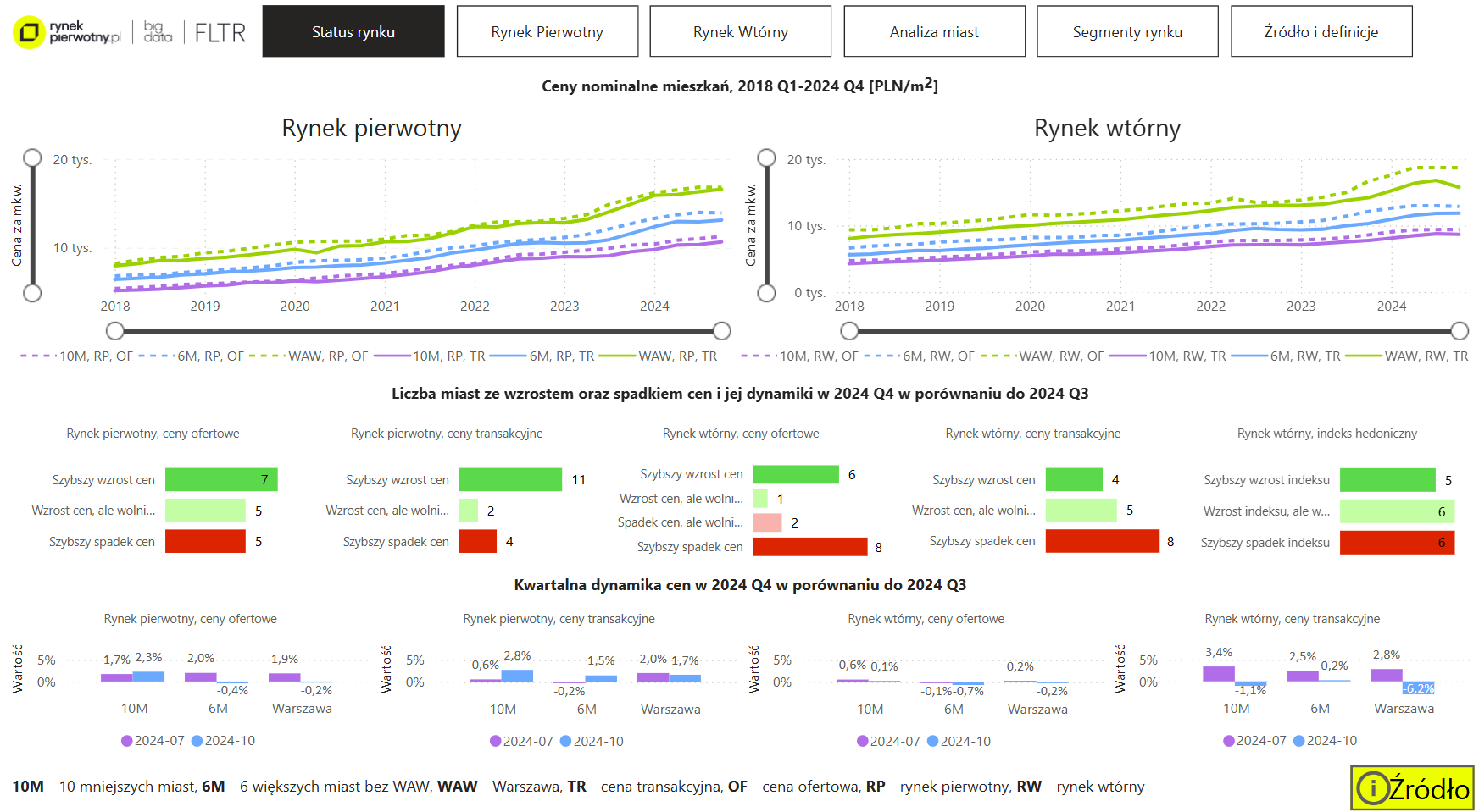 Dashboard to interaktywne narzędzie służące do wygodnego prezentowania i analizy danych w jeszcze lepszy i dokładniejszy sposób. Każdy dashboard ma sprecyzowane zadanie, wspierające przedsiębiorców na rynku nieruchomości. Na poniższej stronie gromadzimy wszystkie dashboardy analityczne i źródła danych oferowane przez FLTR x BIG DATA.