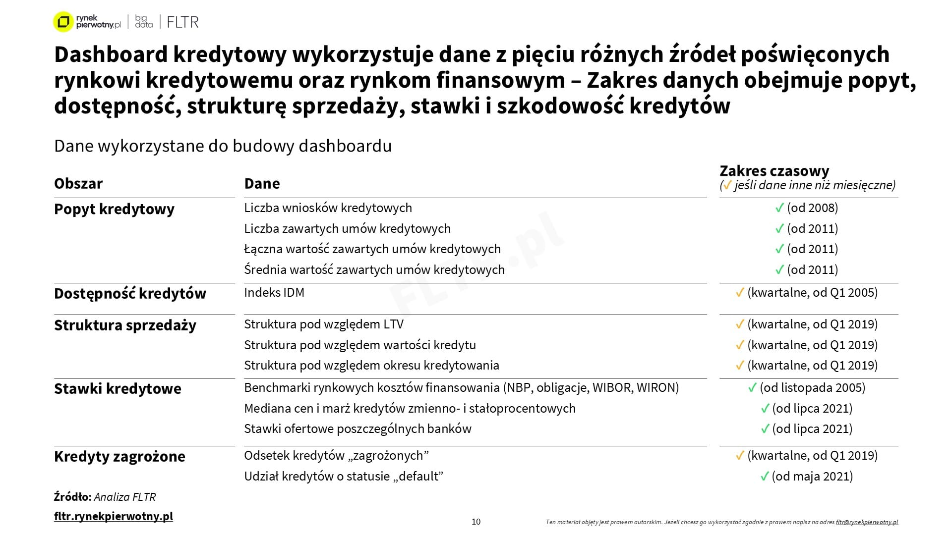 - Dane o strukturze sprzedaży (LTV, długość kredytowania, wartość kredytów)