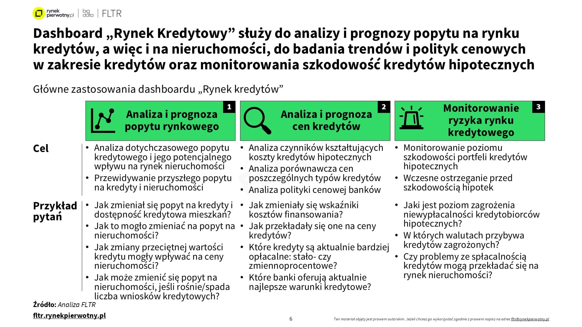 - 📈 analizy i prognozy popytu rynkowego (ile jest udzielanych kredytów i jaki będzie popyt na nieruchomości?),