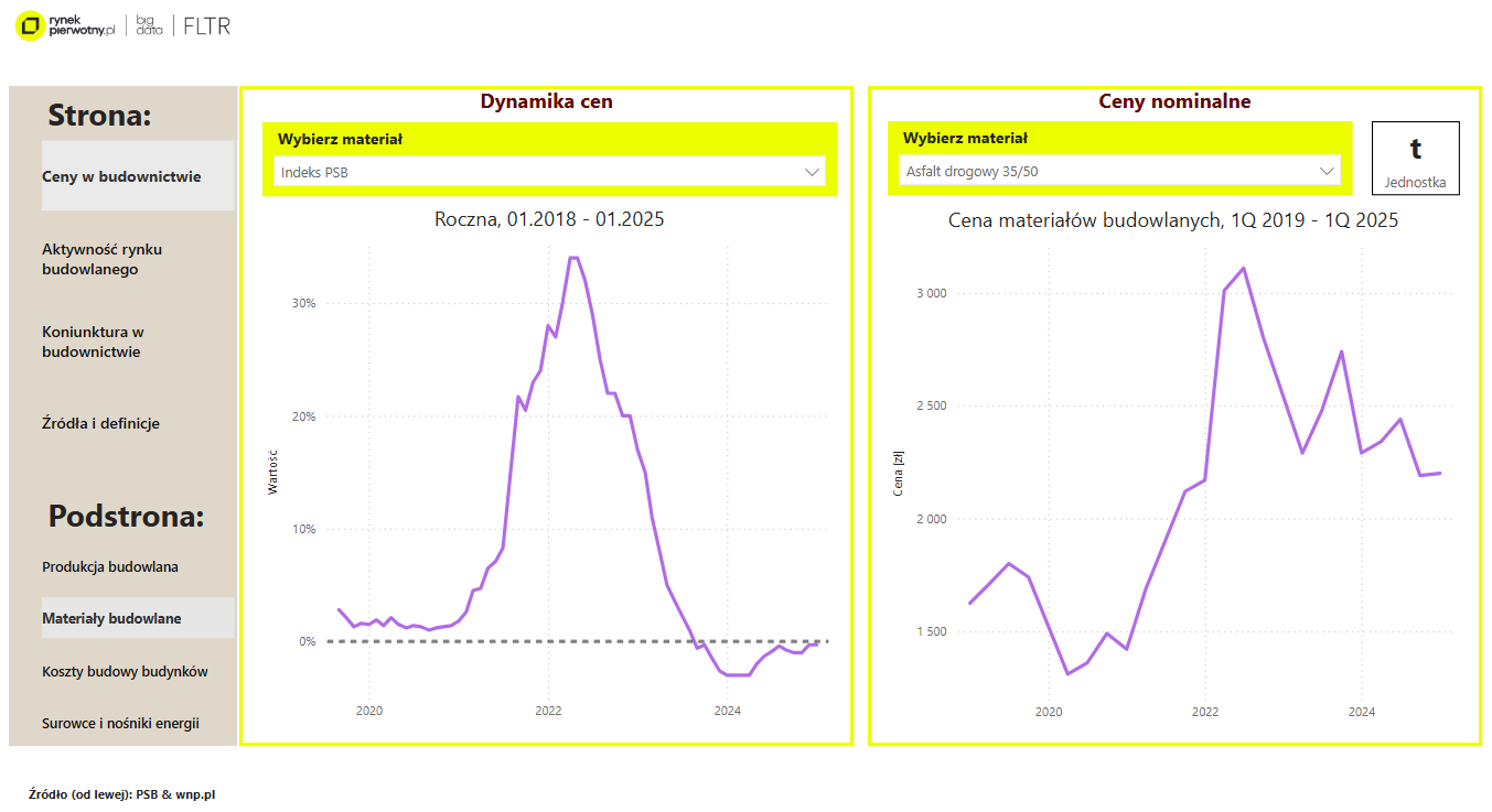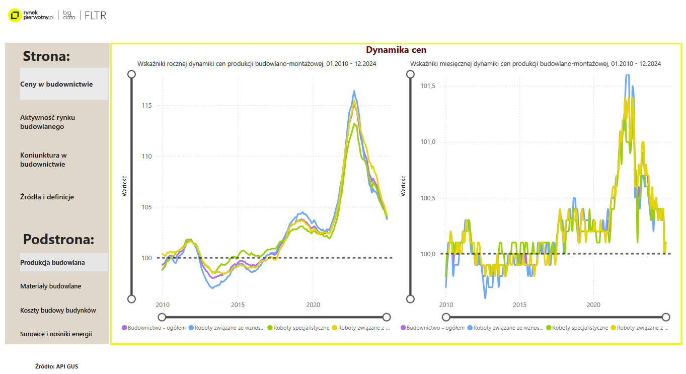 Dashboard „Rynek budowlany” służy do monitorowania sytuacji cenowej
