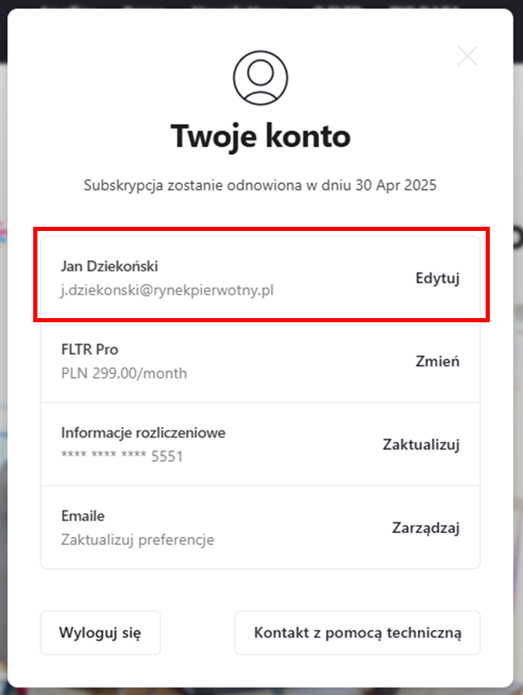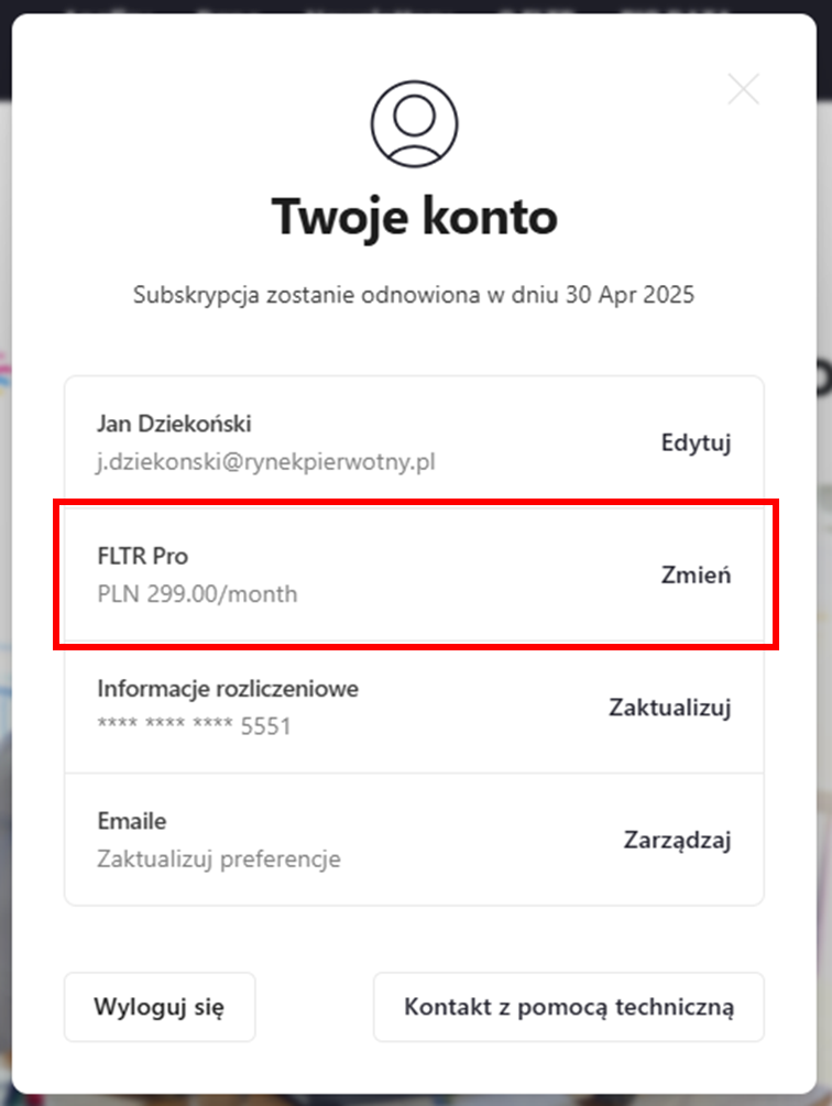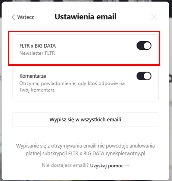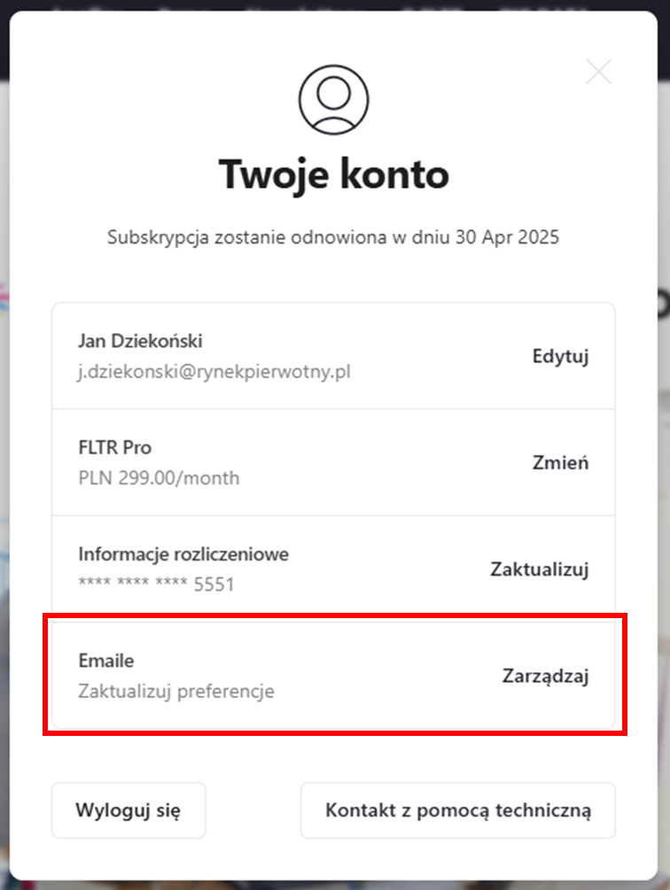 - Żeby skorzystać z newsletterów musisz posiadać subskrypcję FLTR Pro