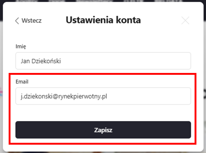 Po otwarciu ustawień konta wybierz Edytuj przy aktualnym emailu.