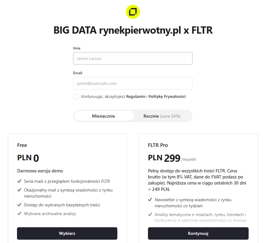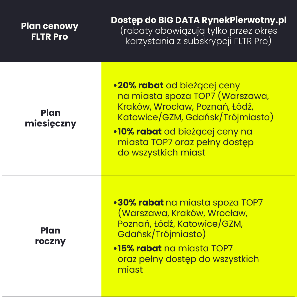 - Subskrybenci FLTR Pro mają jednak dostępne atrakcyjne rabaty - jeśli chcesz z nich skorzystać to napisz do nas na fltr@rynekpierwotny.pl