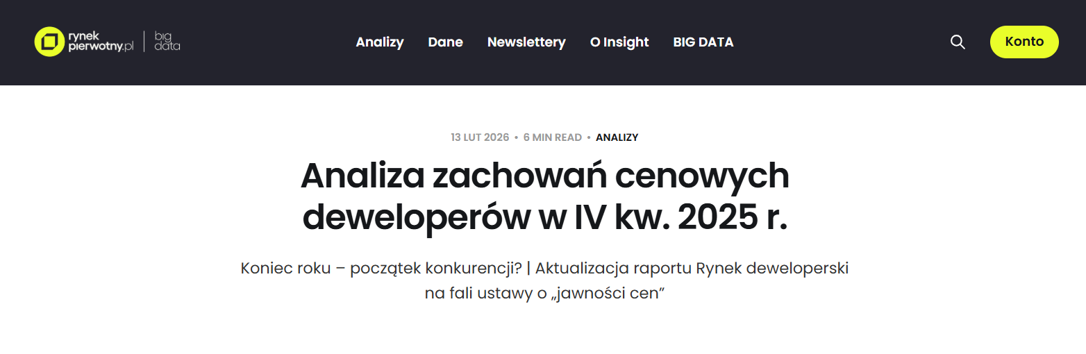 - wykresu tygodnia omawiającego trend z rynku nieruchomości
