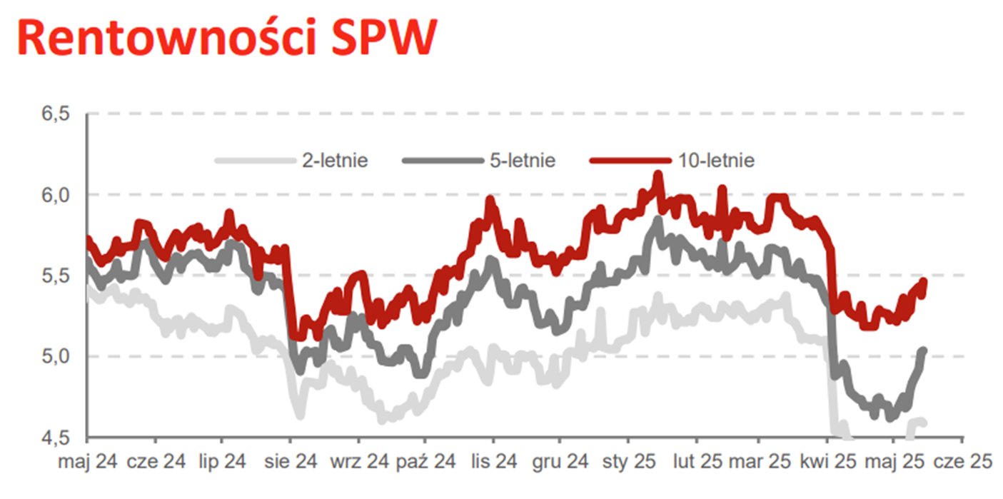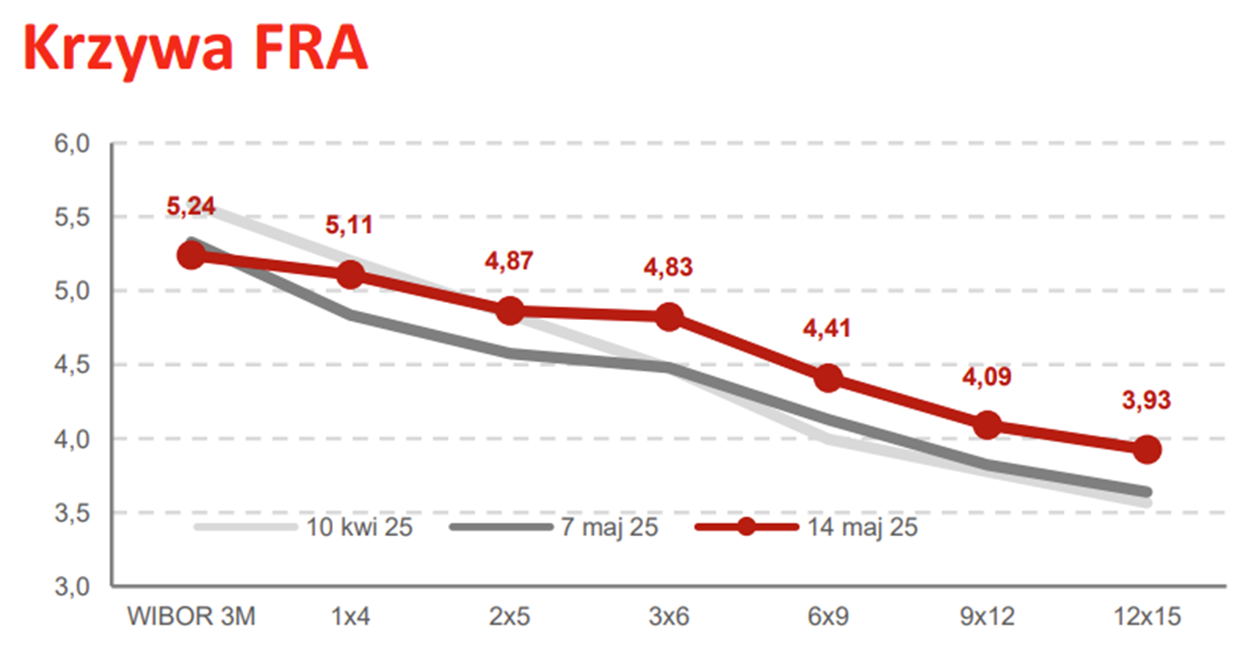 Po umowach celnych USA z UK oraz Chinami i "jastrzębiej" obniżce stóp procentowych krzywa FRA przesunęła się w górę o ok. 0,5 p.p., podobnie jak oprocentowania obligacji skarbowych, a to oznacza że rynek spodziewa się wyższych stóp w przyszłości niż spekulowano jeszcze miesiąc temu (4,0% za 12 miesięcy zamiast 3,5%). To sygnał do wyhamowania oczekiwań co do dalszych cięć stóp i wzrostu stawek kredytów o okresowo stałym oprocentowaniu oprocentowaniu. Nie mniej rynek powinien poczuć dodatkowy napływ popytu kredytowego, ale nie aż taki, jak niedawno oczekiwano