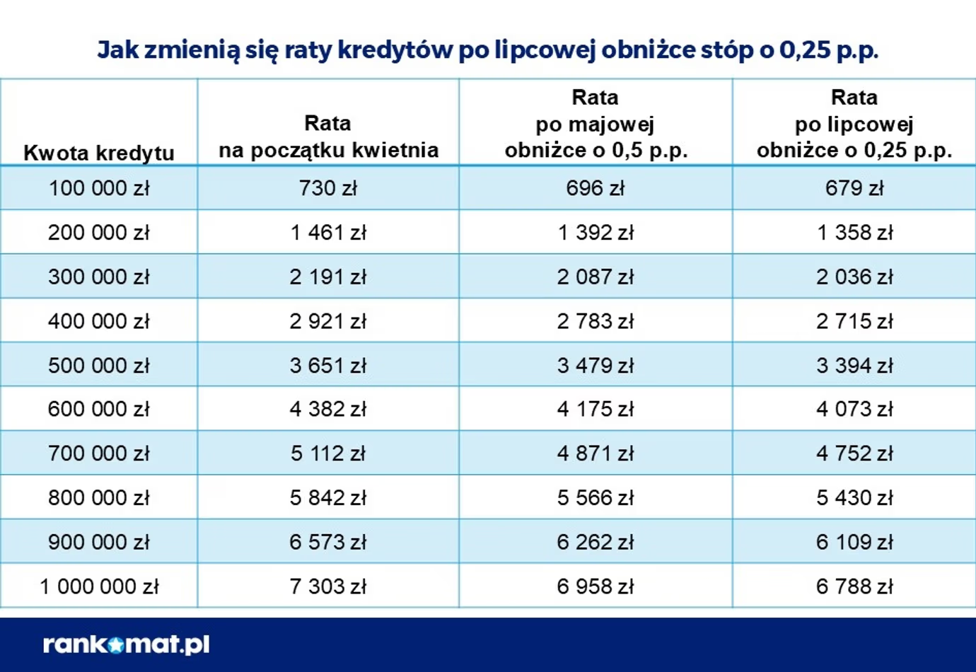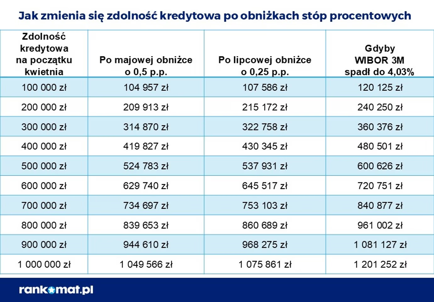 W efekcie obecni kredytobiorcy posiadający zobowiązanie o zmiennym oprocentowaniu skorzystają na niższych ratach (jak wyliczył Rankomat 85 zł przy kredycie 500 tys. zł na 30 lat). Dla wnioskujących z kolei decyzja RPP oznacza zwiększenie zdolności kredytowej o ok. 7/8% wobec stopy 5,75% obowiązującej do kwietnia 2025