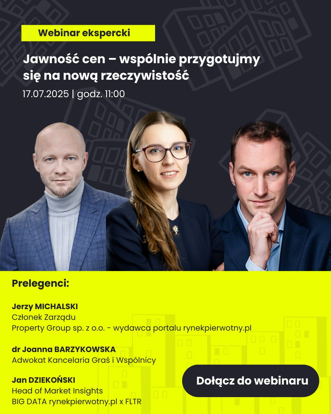 W tym miejscu zapraszamy na webinar organizowany przez RynekPierwotny.pl "Jawność cen – wspólnie przygotujmy się na nową rzeczywistość", który odbędzie się 17.07!