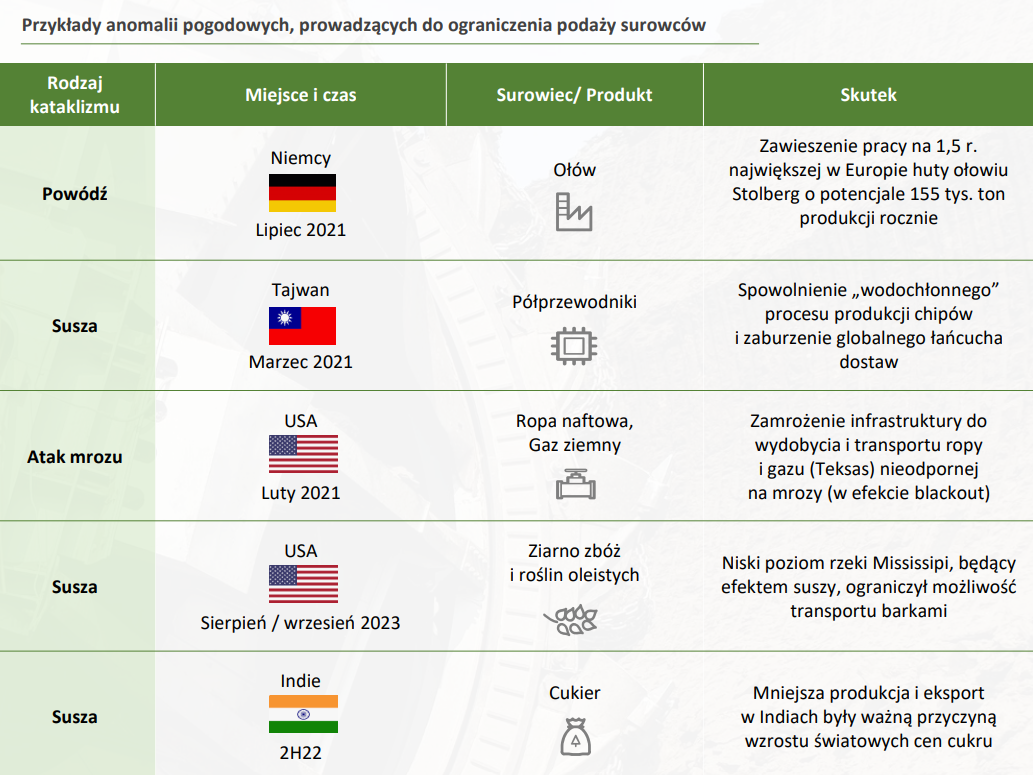 Należy pamiętać, że katastrofy naturalne mogą powodować m.in. przerwy w dostawach surowców (wzrost cen i spadek produkcji) i uszkodzenia infrastruktury (utrudniony transport i handel).