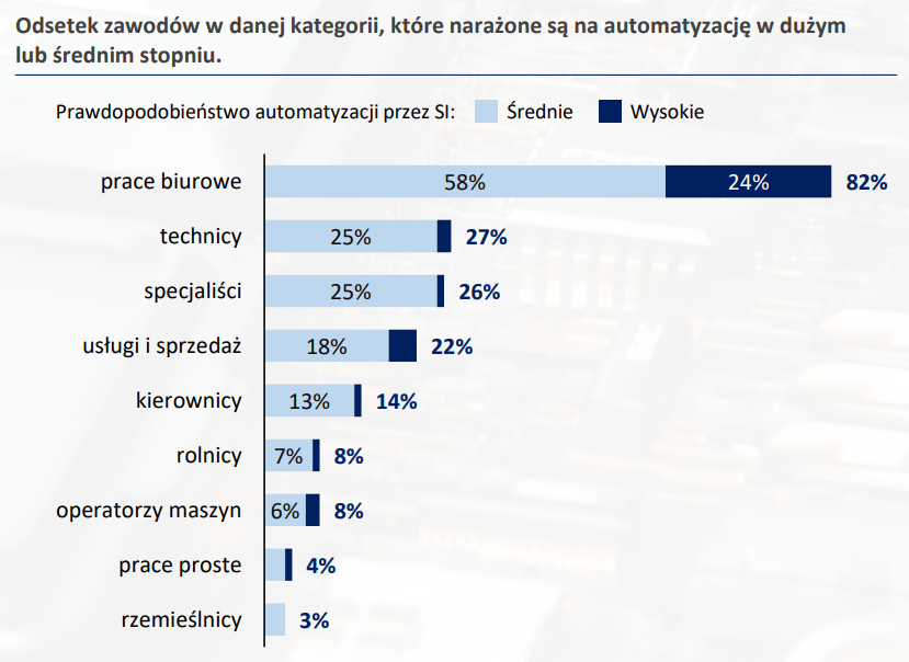 Internetowy rynek, na którym zamiast poszukiwać określonego usługodawcy, ludzie będą poszukiwać botów do realizacji swoich potrzeb (np. analiza finansowa, operacje księgowe, rekrutacja, opracowanie haseł i grafik marketingowych, doradztwo prawne, analiza rynku, tworzenie stron internetowych, a może też analiza nieruchomości) staje się coraz bardziej realny. Boty będą konkurować nie tylko pod względem ceny i dostępności, ale także reputacji, opartej na ocenach i opiniach. To oznacza, że dla wielu usługodawców w perspektywie kilku do kilkunastu lat, AI może stanowić bardzo efektywną konkurencję. Nie będą to ludzie korzystający z narzędzi AI w celu zwiększenia produktywności, lecz autonomiczne boty, które wyprą tradycyjnych pracowników.