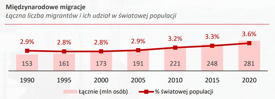 Według danych ONZ, łączna liczba światowych migrantów wzrosła ze 170 mln w 2000 r. do 280 mln w 2020 roku. Obecnie wiele krajów rozwiniętych doświadcza największego napływu migrantów od dekad.