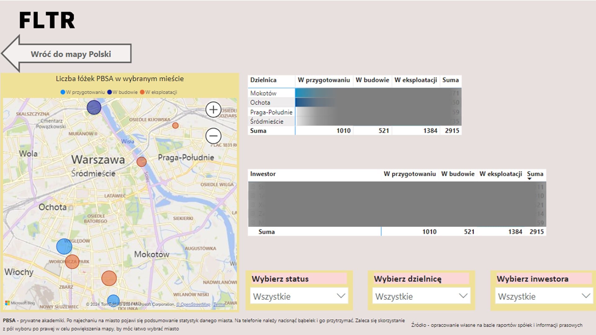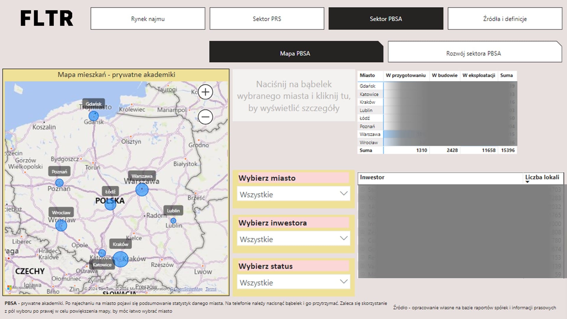 W okrągłym numerze #75 FLTR publikujemy wersję 2.o naszego ostatniego dashboard FLTR. W ramach aktualizacji dashboard ten objął nie tylko rynek najmu i PRS, ale także sektor prywatnych akademików (tzw. PBSA).