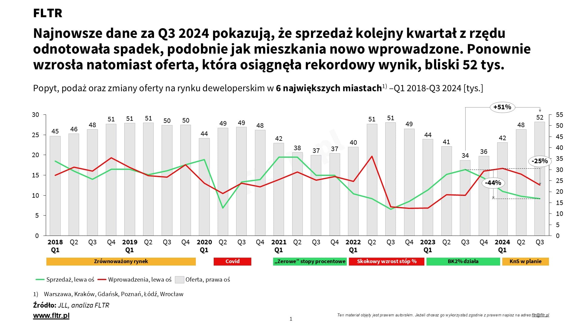 Jesień nadchodzi wielkimi krokami, a wraz z nią przygotowaliśmy dla Państwa 96. numer newslettera FLTR, pełen nowych tematów! Głównym tematem niniejszego wydania jest badanie Urzędu Miasta Warszawy nt. stołecznego rynku najmu krótkoterminowego, w którym zamieściliśmy m.in. dane nt. relacji między przychodami osiągniętymi przez najem krótko- oraz długoterminowy. W dalszej części wspomnieliśmy również o powodzi w kontekście rynku nieruchomości i gospodarki, a także przyjrzeliśmy się aktualnemu stanu rynku budowlanego. W obszarze "Wykres tygodnia" opracowaliśmy dane PKO BP nt. struktury kosztów budowy dla budynku jedno- i wielorodzinnego, a także przeanalizowaliśmy statystyki nt. cudzoziemców w Polsce, w tym mieszkania przez nich nabywane. Na zakończenie, wybraliśmy najciekawsze podcasty, nagrania video oraz liczne lektury.