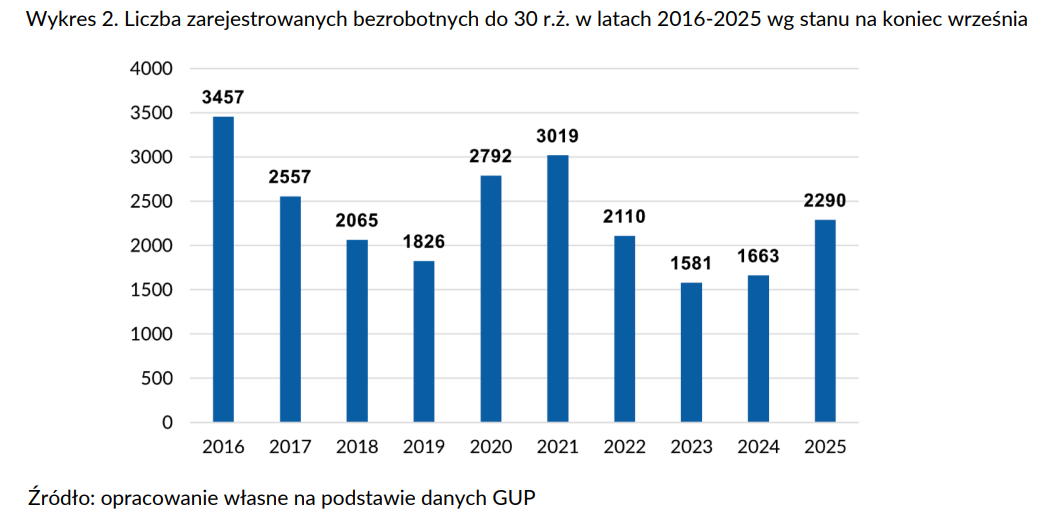 Niemal 2,3 tys. osób do 30. roku życia było zarejestrowanych jako bezrobotne w Krakowie na koniec III kwartału 2025 r. To o prawie 40 proc. więcej niż rok wcześniej – wynika z najnowszego raportu Grodzkiego Urzędu Pracy.