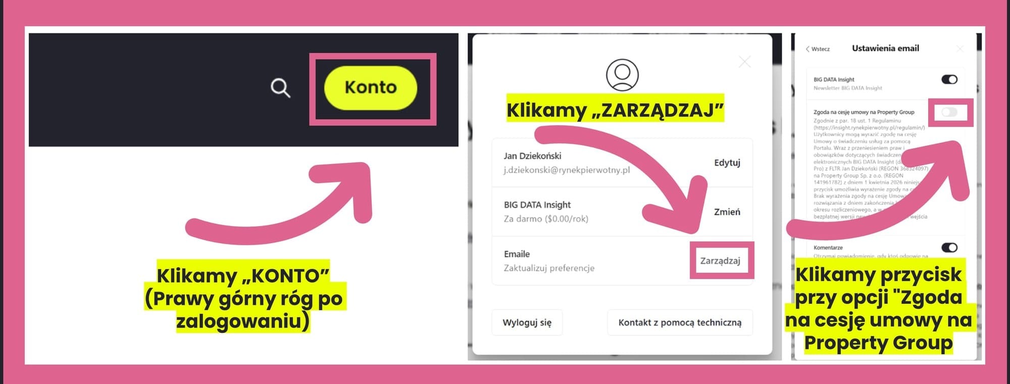 Żeby móc dalej korzystać z subskrypcji konieczne jest wyrażenie przez Państwo zgody na cesję. Poniżej znajduje się instrukcja jak z poziomu konta można dokonać akceptacji zmian.