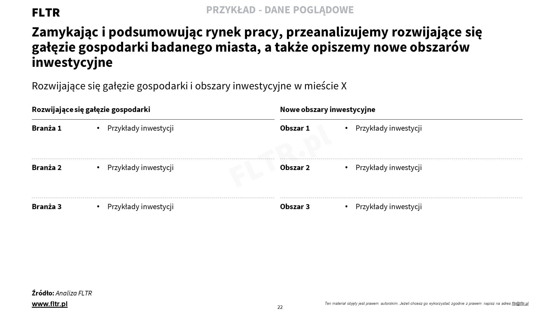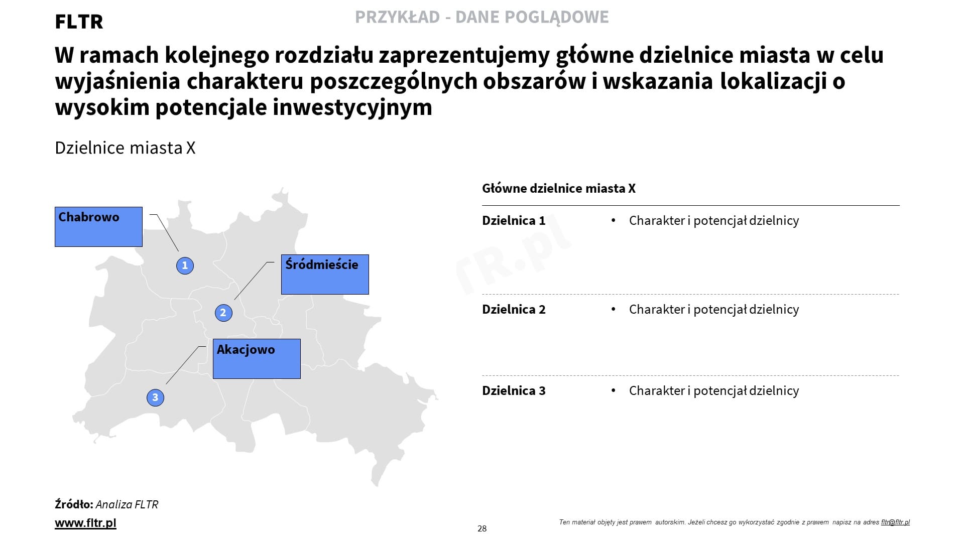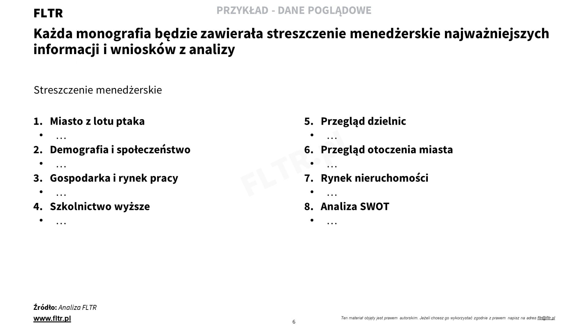 Najnowsza seria analiz FLTR zmienia ten spos贸b analiz i wprowadza ca艂y cykl monografii po艣wi臋conej analizie poszczeg贸lnych miast w Polsce. W ramach tej serii przewidujemy nast臋puj膮cy zakres analizy.