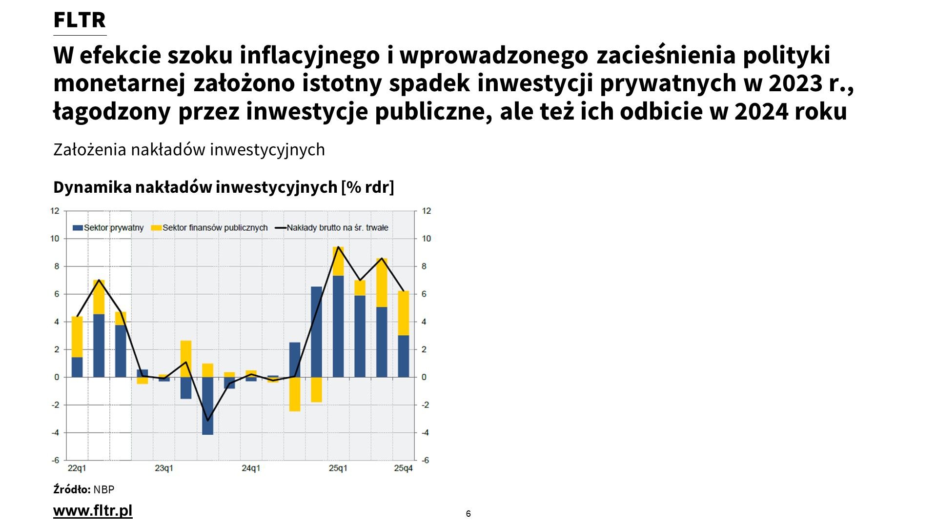 - Odbicie gospodarki w 2024 roku ma być zasilane przede wszystkim odbudową konsumpcji i dalszego wzrostu eksportu, a w 2025 także odbudową inwestycji prywatnych.