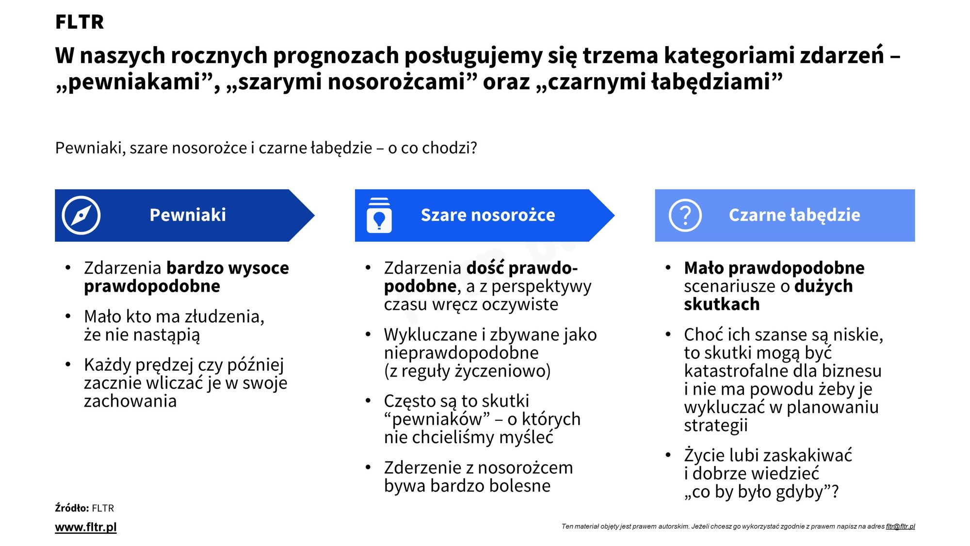 Nasze przewidywania roczne mają za zadanie oddać ducha czasu, czy wskazać procesy i trendy, które mogą zachodzić - gdyż to one często mają większe znaczenie, niż punktowe prognozy. Dla praktyczności dzielimy te wydarzenia na trzy kategorie: