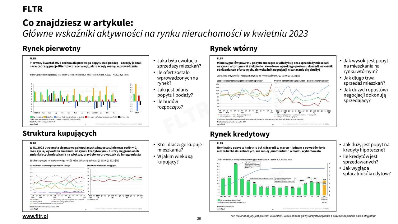 Jakie były wskaźniki aktywności rynku w kwietniu 2023 i w całym Q1 - na rynku pierwotnym, wtórnym i kredytowym